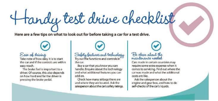 A few tips on what to look out for before taking a car for test drive.