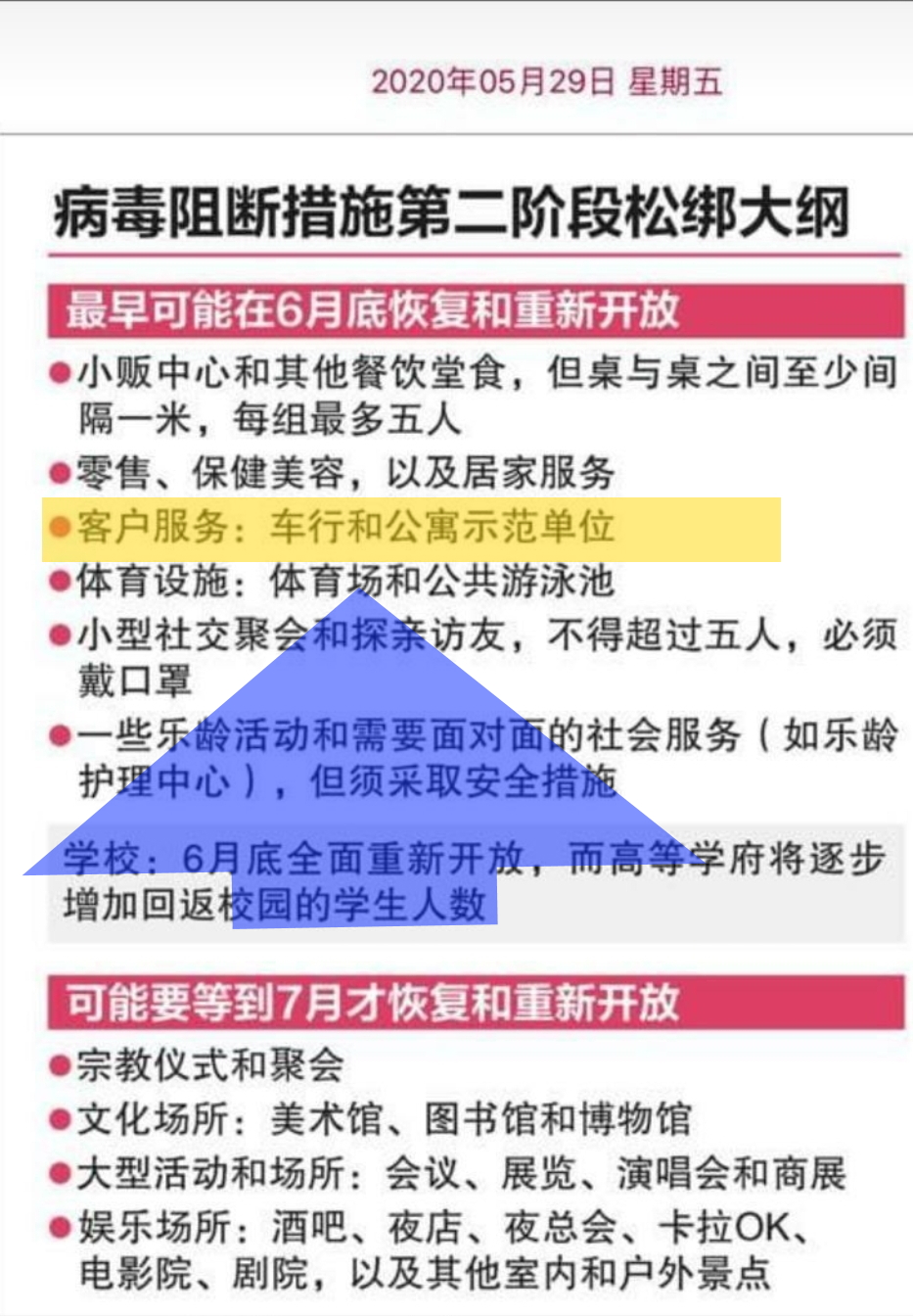 29 May Reports in Mandarin reveals possible date for motor traders to re open.